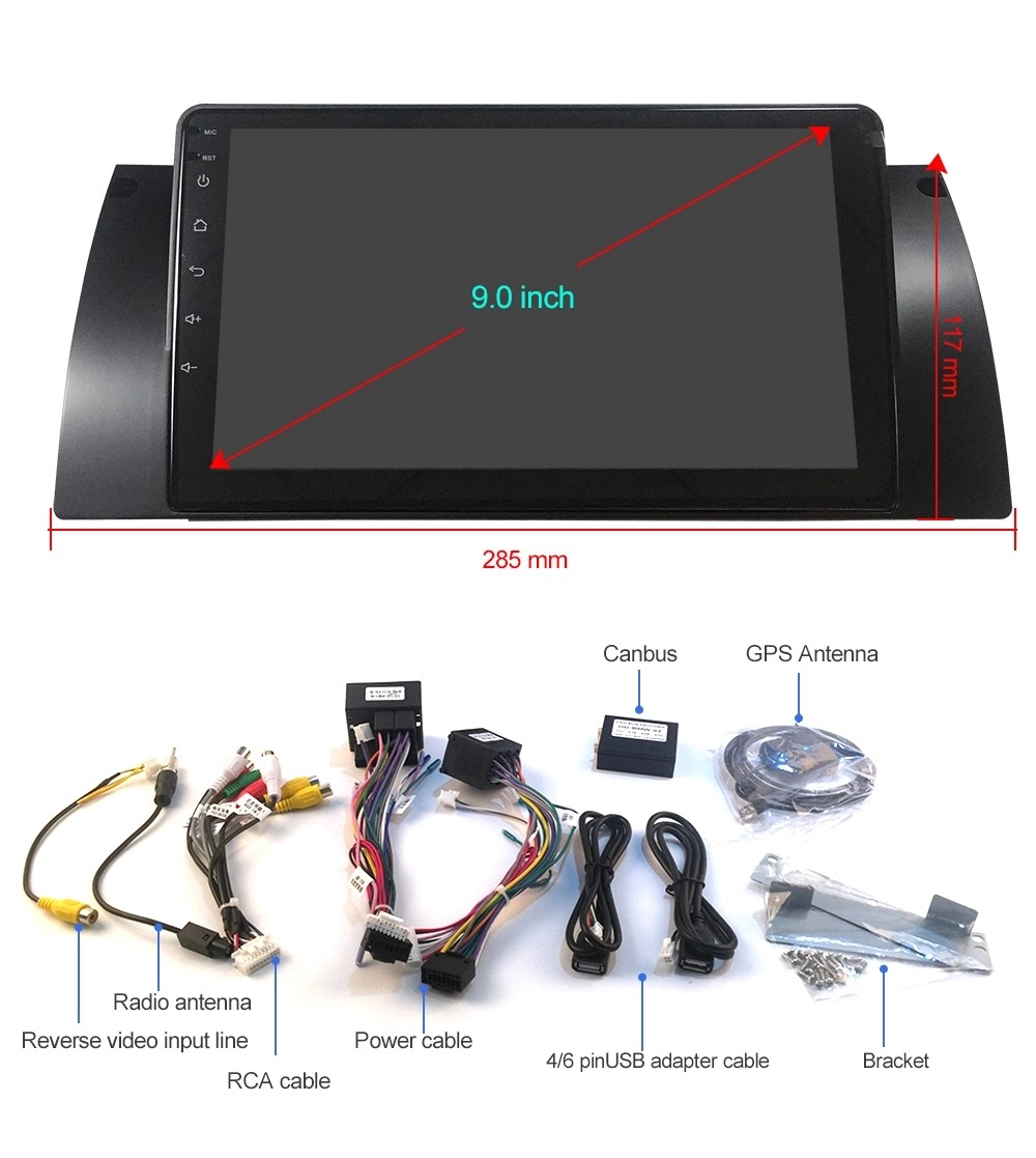 Preis inbegriffen: markenspezifisches Hauptgerät im Werkslook, fahrzeugspezifischer Kabelbaum, 2xUSB-Kabel, RCA-Kabel,Rückfahrkamera-Kabel, GPS-Antenne.