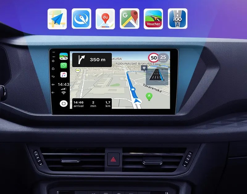 2/32 GB Carplay - Prozessor: Topway TS7 UIS8141E A7 - 4 Kerne x 1,3 GHz, RAM-Speicher 2GB- 32-bit DDR3, ROM-Speicher32GB, eingebautes CarPlay / Android Auto, Display: IPS-Matrix.